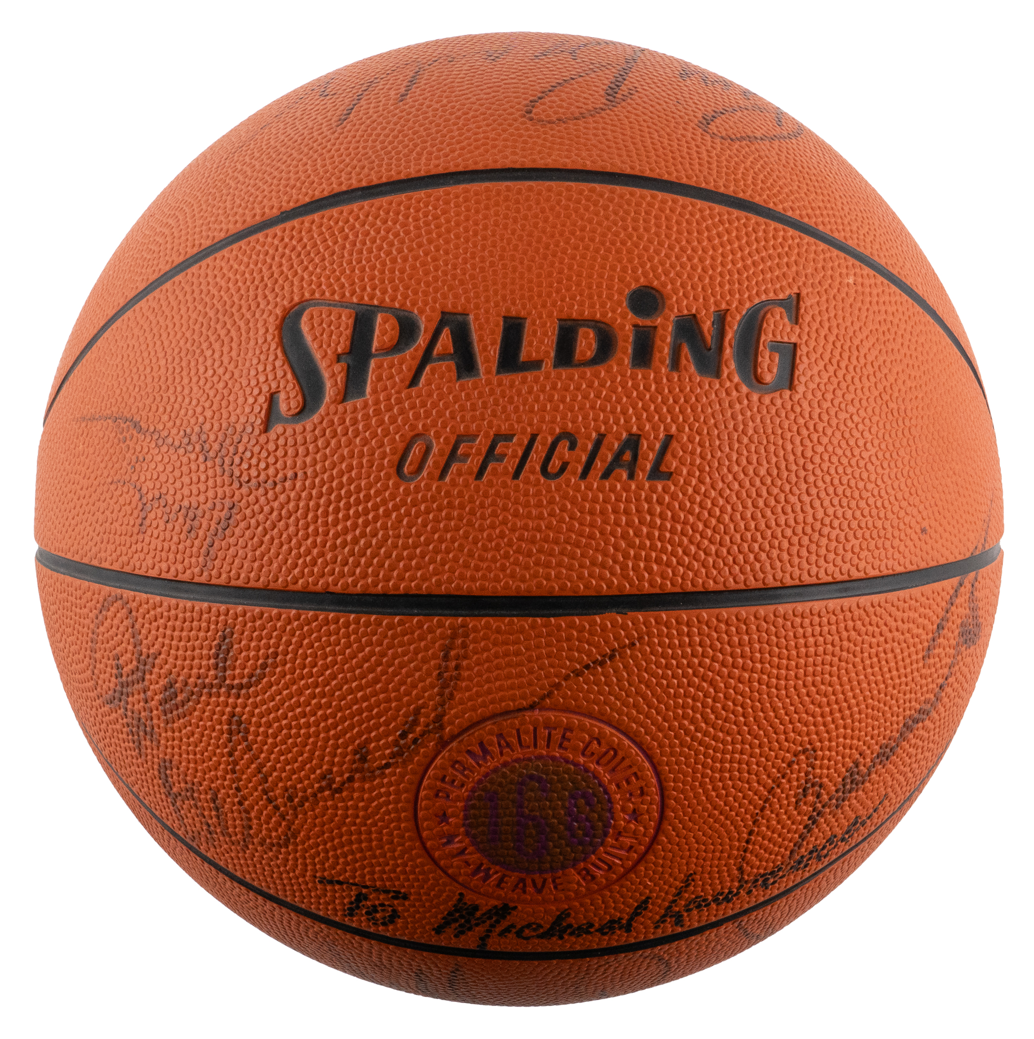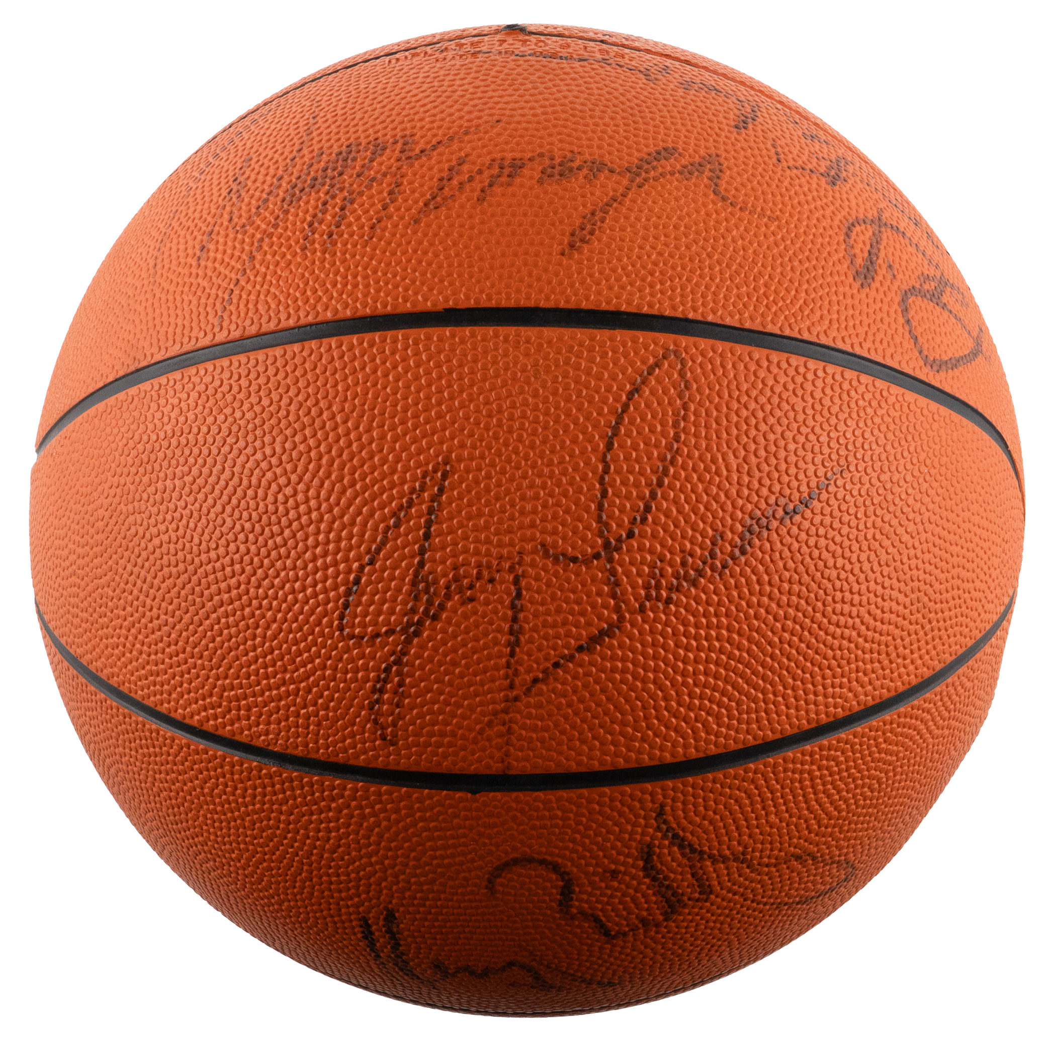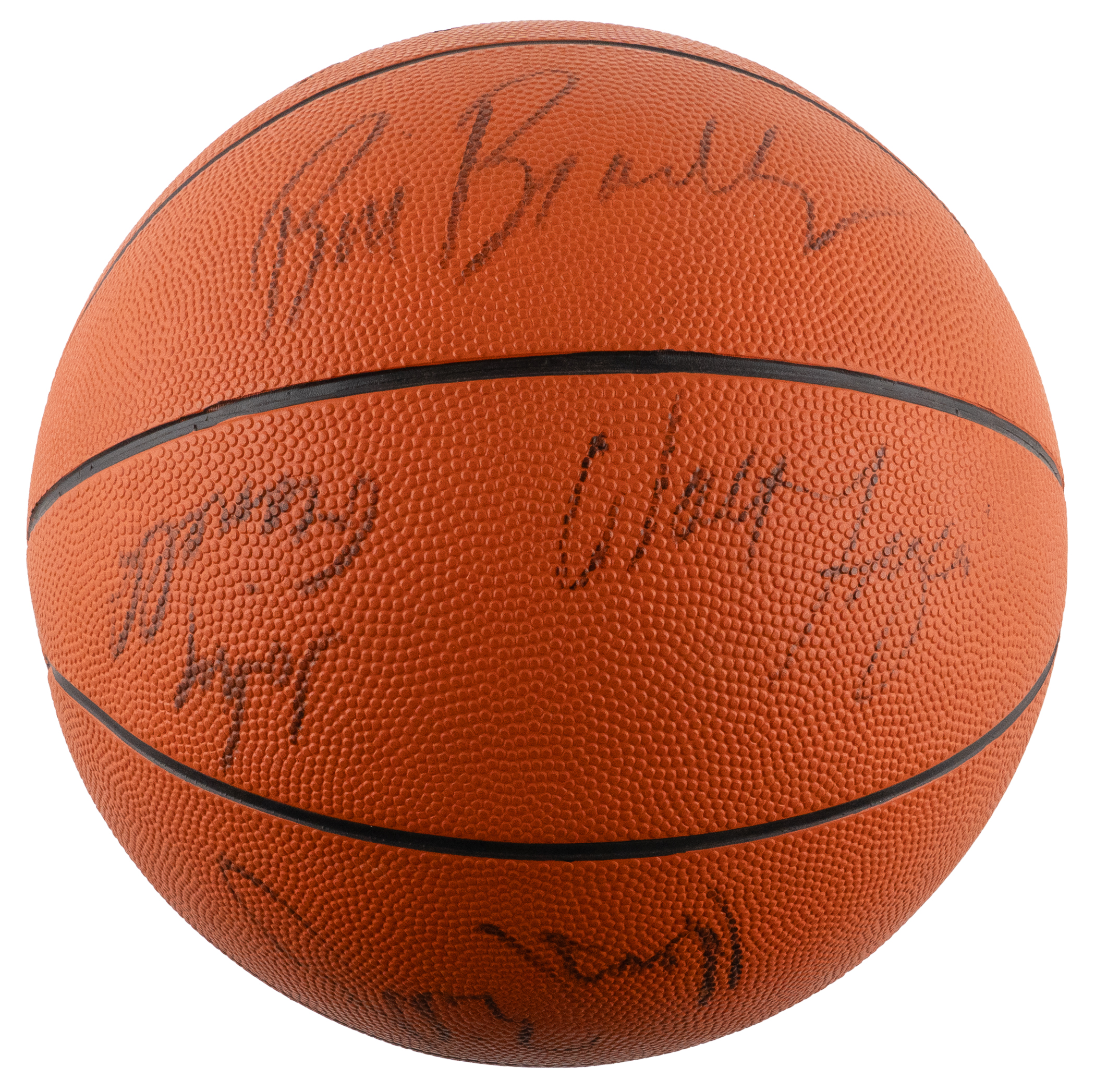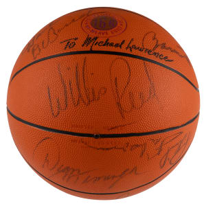 Recall one of the deepest, most talented teams in NBA history, with this 1972-1973 New York Knicks team-signed basketball. Boasting seven future Hall of Famers, this talent-rich squad racked up a 57-win regular season, and then really proved its mettle in the playoffs by vanquishing the Baltimore Bullets, Boston Celtics and Los Angeles Lakers in succession, to claim the NBA championship. A Spalding Official model, the offered basketball retains a pleasing shape despite not being fully inflated. A total of (11) members of the 1972-1973 team have signed, and their signatures remain readily recognizable. Featured signers are: Hall of Famers: Walt Frazier, Earl Monroe, Willis Reed, Dave DeBusschere, Bill Bradley, Jerry Lucas, Phil Jackson; stars: Henry Bibby, John Gianelli, Dean Meminger, Dick Barnett.
