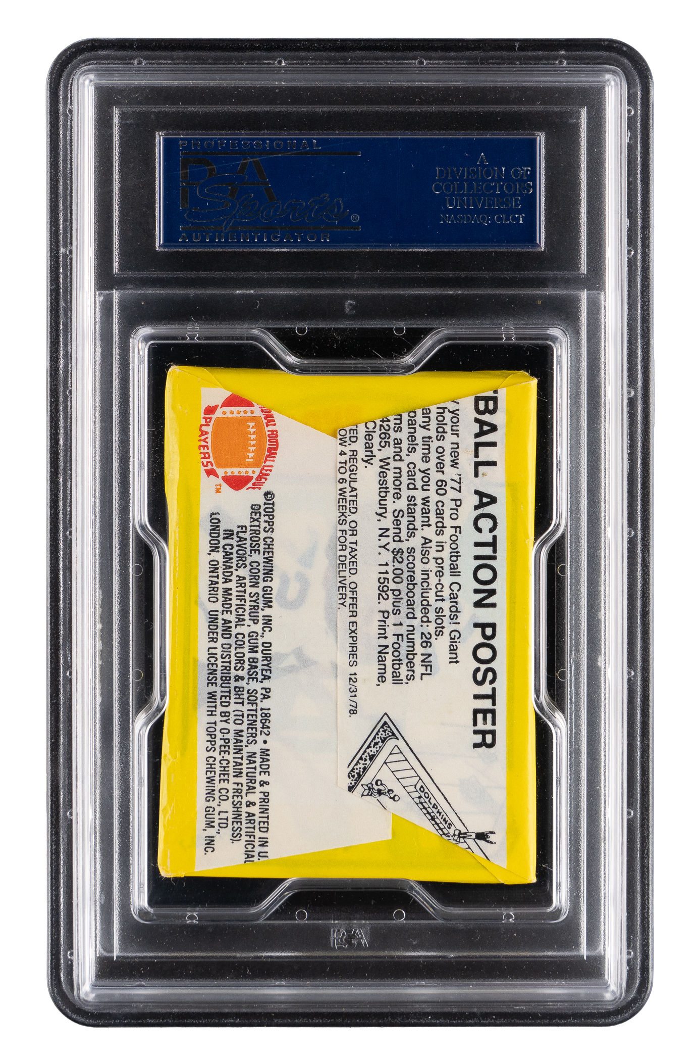 Each graded NM 7 by PSA. Feeling lucky? Secure the offered 1977 Topps Football unopened wax pack. This corner store survivor will deliver 10 cards plus a stick of bubble gum. Find high-end examples of Bradshaw, Carson RC, Largent RC, Haynes RC, Papale RC, Payton, Selmon RC, Staubach, Swann, Webster RC and many more!