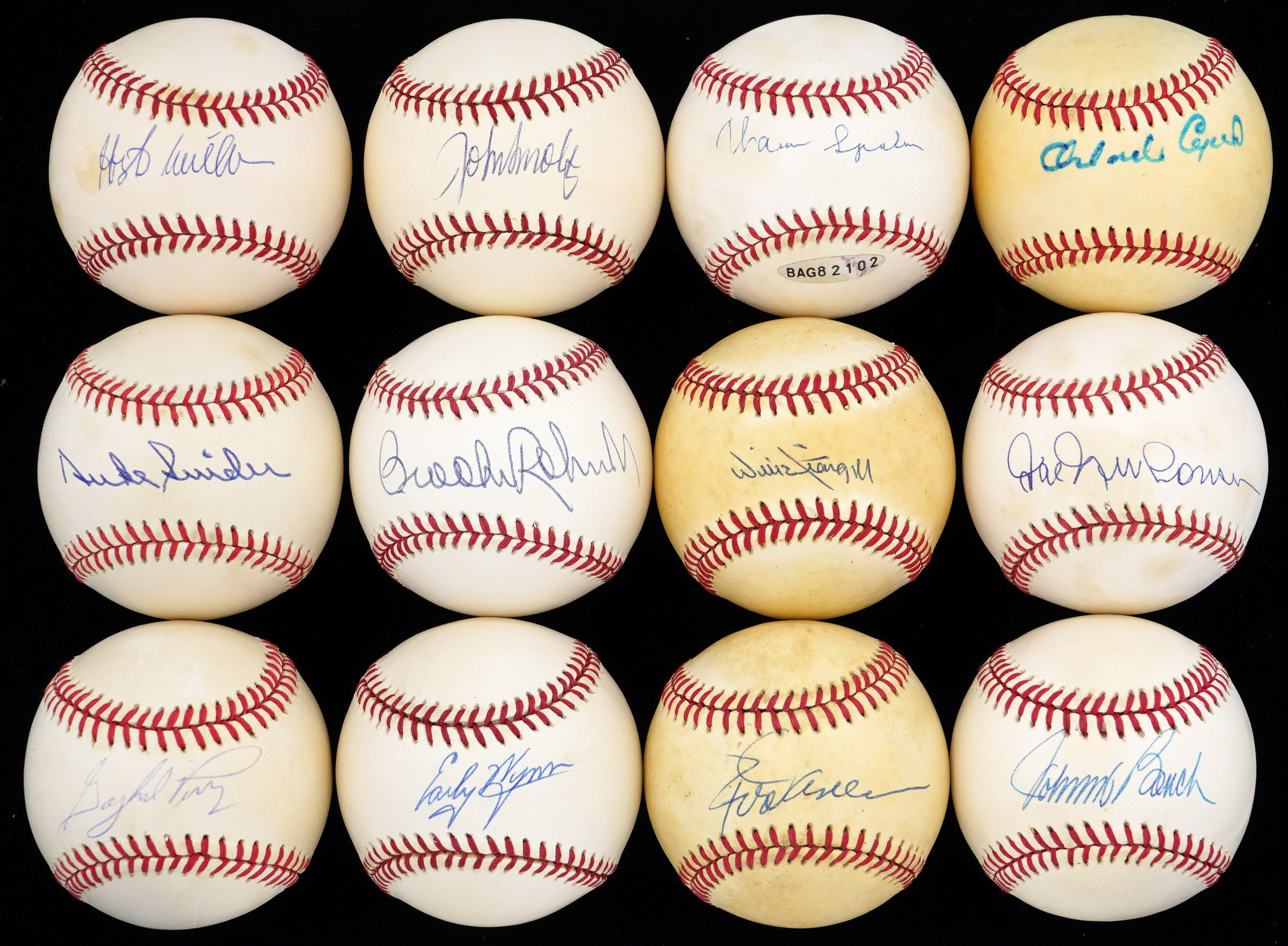 Bag a ready-made collection, with this bundle of (35) Hall of Famer signed baseballs. Prominent legends have provided generally pleasing signatures, which are sweet spot applications, with one exception. Unless noted, the baseballs are attractive ONL, OAL, or OML models.