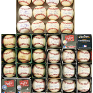 Vern Law has signed (“8 to 10” avg) one dozen baseballs, most inscribed "Cy Young 1960," (9) ONL/Coleman balls and (3) OML/Selig balls, still in their original boxes.