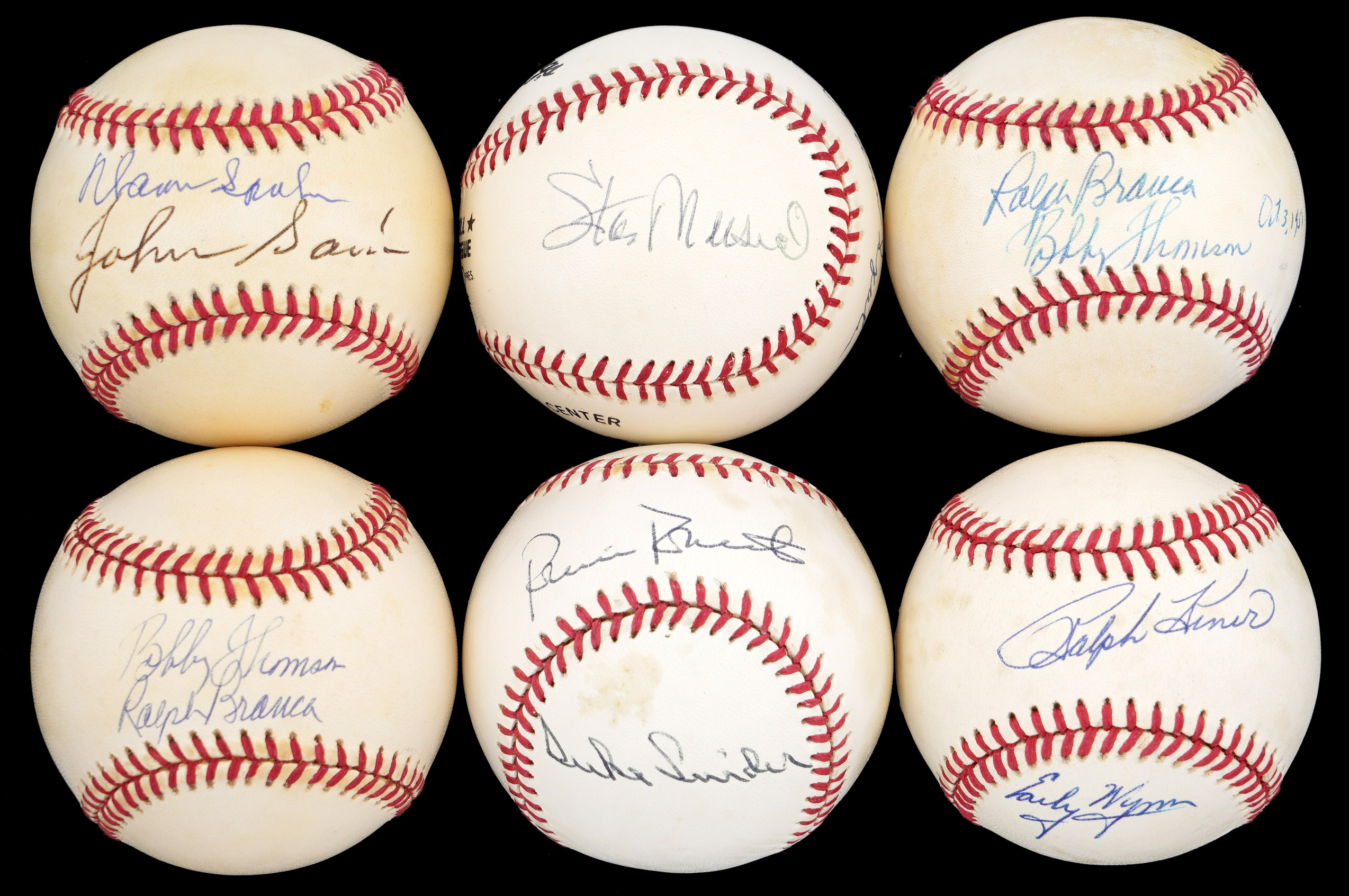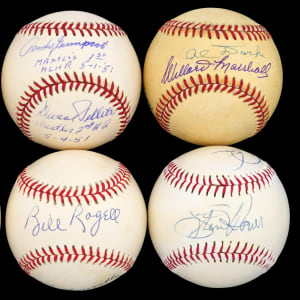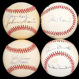 Beef up your autograph collection with this bundle of (18) dual-signed and multi-signed baseballs. A fair number of Hall of Famers and star players are counted, including Warren Spahn and Stan Musial. The majority of the signatures are firm applications, though some of those located on the multi-signed baseballs are significantly faded.