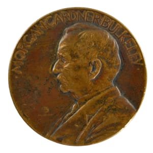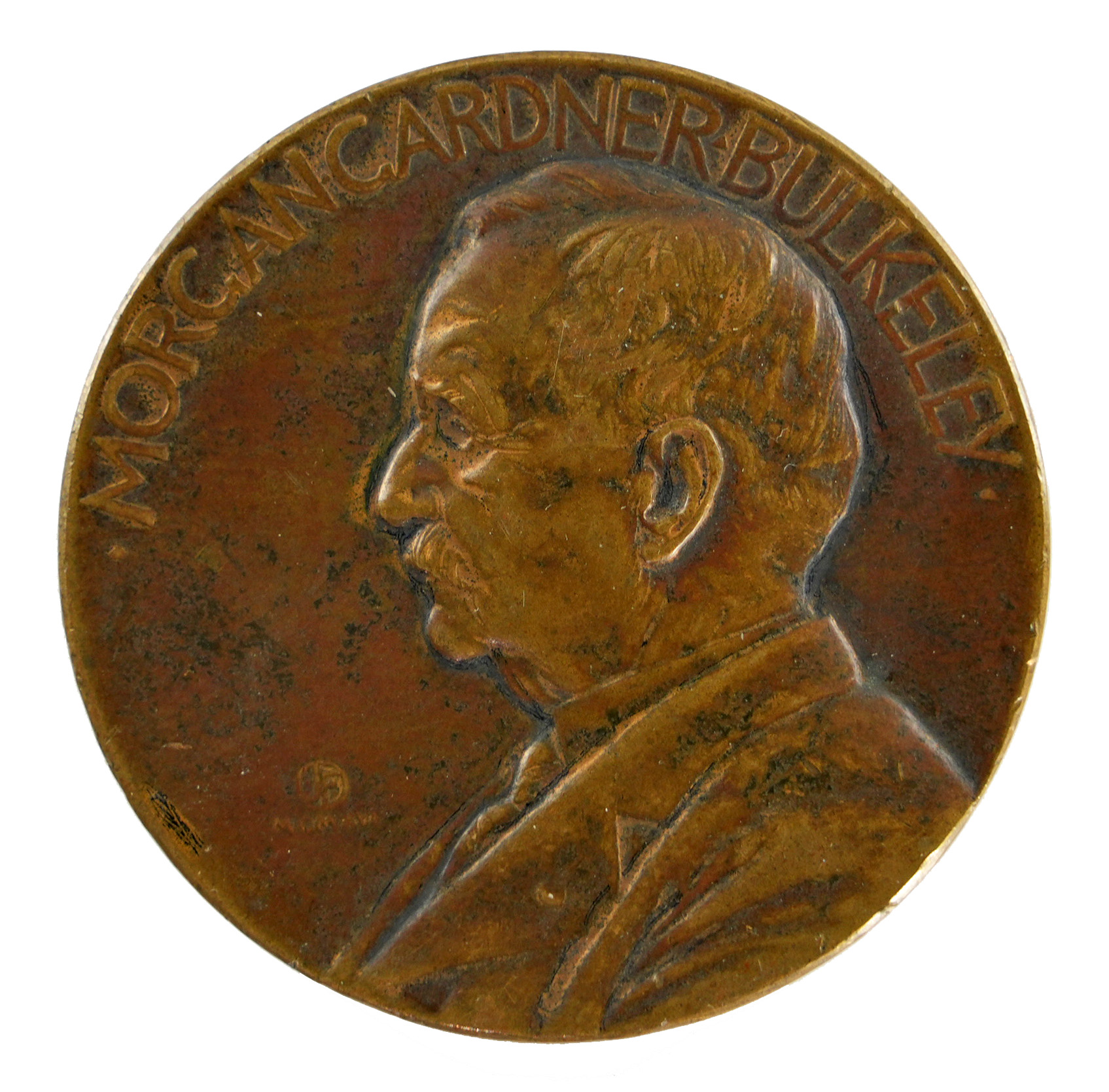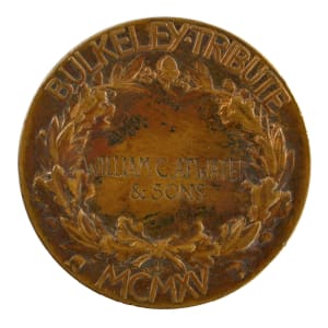 Claim an antique Hall of Famer award, with this 1916 Medallic Arts Co. Morgan Bulkeley Tribute medal. Struck in bronze, this stately medal has a diameter of 1-3/4", and reports in XF condition. Bulkeley owns a distinguished resume, as a Civil War soldier, the first president of the National League of Professional Baseball Clubs, the mayor of Hartford, governor of Connecticut, U.S. Senator from Connecticut, and president of the Aetna Insurance Company. For his service as the first NL president, Bulkeley was elected to the Hall of Fame in 1937. Here he is seen in a relief profile image, on the obverse of the offered medal, with his full name "Morgan Gardner Bulkeley" lettered above. Sculptor/medalist John Flanagan designed this piece, and his initials are located on the obverse field, at left. The reverse is ringed with a laurel wreath, and the legend "Bulkeley Tribute" is lettered above. The name "William C. Atwater & Sons" is engraved inside the wreath, and "Medallic Art Co. NY" is impressed into the rim on the south side. A fairly scarce medal type, this one has crossover appeal for baseball and political collectors, and numismatists as well.