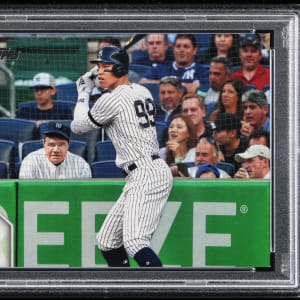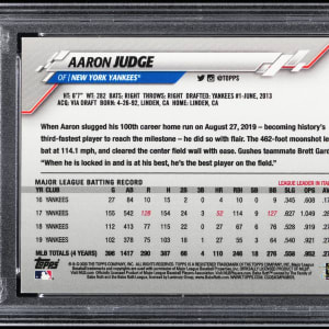 Graded EX-MT 6 by PSA. With a resurrected "Bambino" in the background (in full Yankees attire!), future Hall of Famer Aaron Judge gets ready on the offered 2020 Topps #7 super shortprint. Only 9 total copies have been judged by the authenticator!